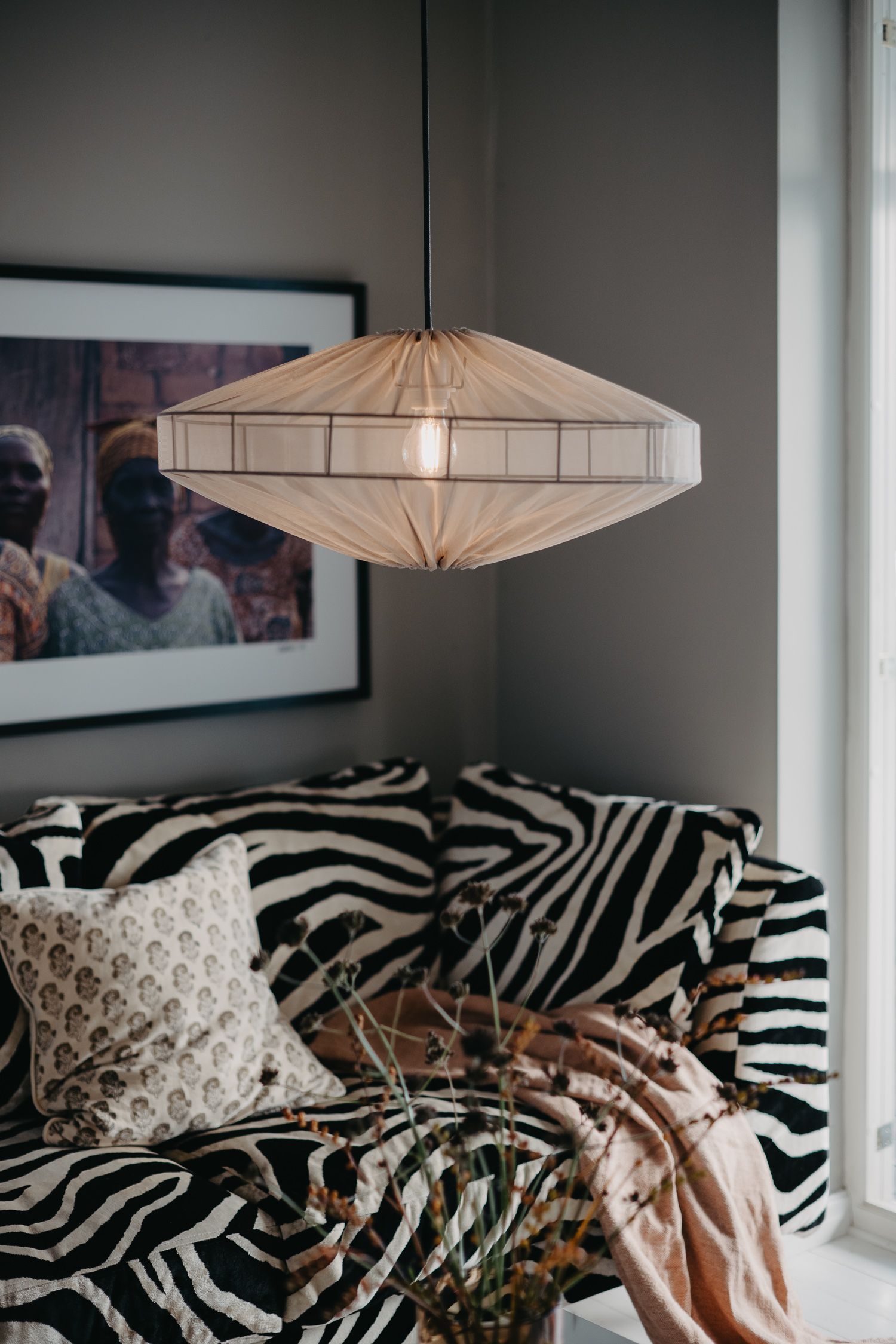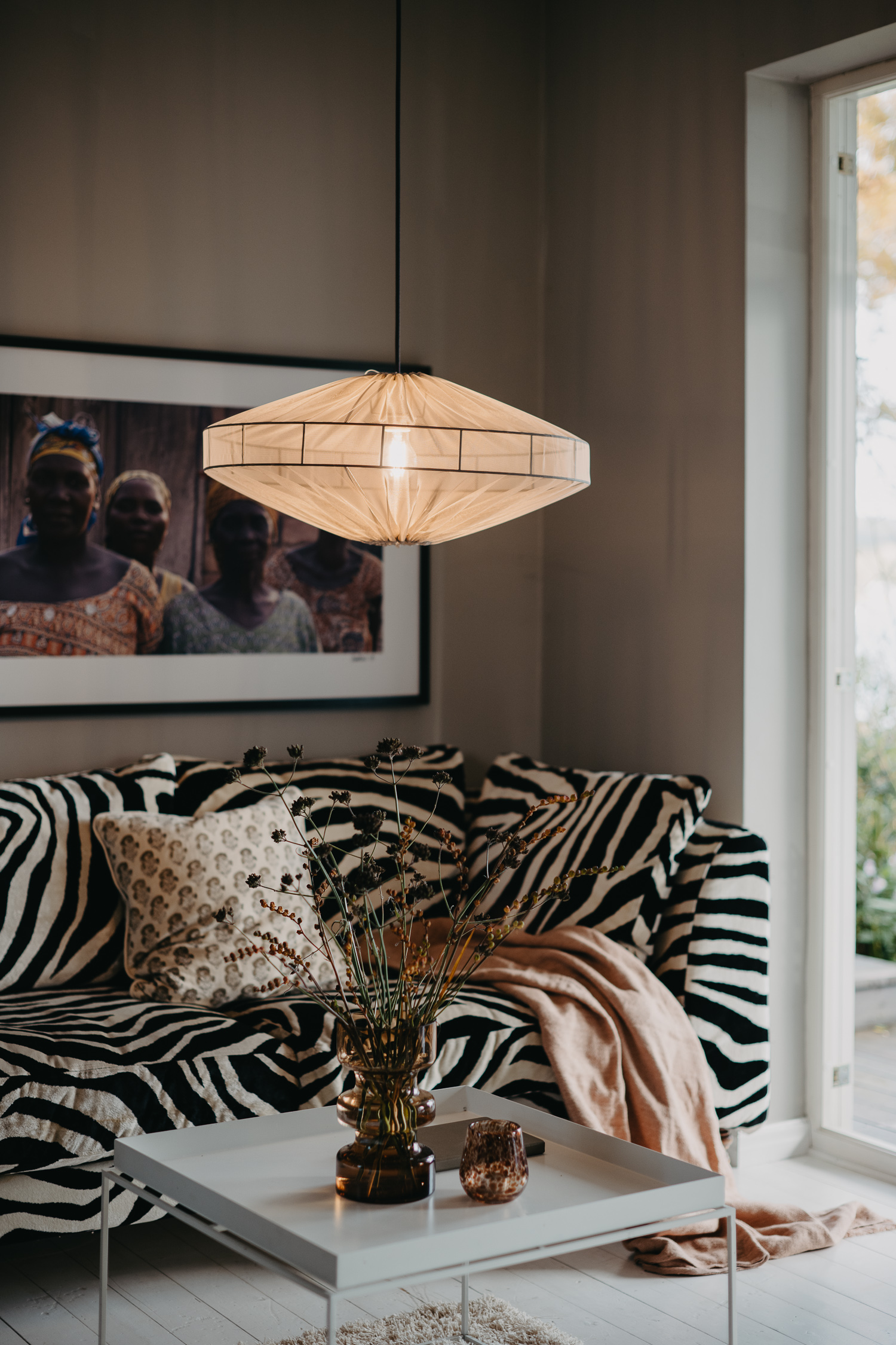Alba i vårt semitransparenta tyg Lounge, ger ett fint och stämningsfullt sken antingen över matbordet/soffbordet eller varför inte i sovrummet eller hallen. Finns i flertal färger som kan skapa olika utryck i just din miljö. För ett krispigare ljus, använd en ljuskälla med 3000K eller högre. Vill du däremot ha en varmare sken, använd en ljuskälla med 2700K eller lägre.